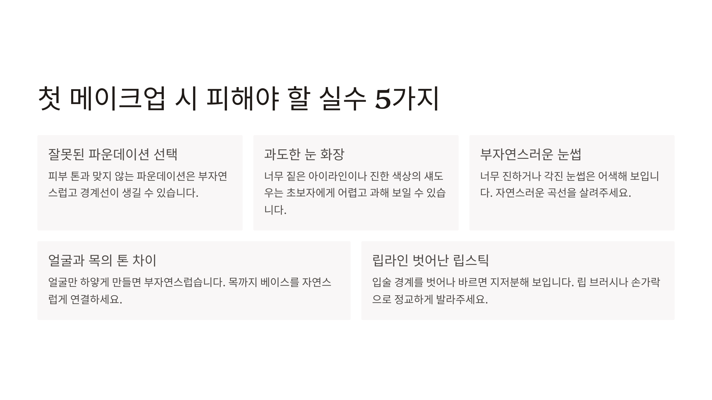 🚫 첫 메이크업 시 절대 피해야 할 실수 5가지
