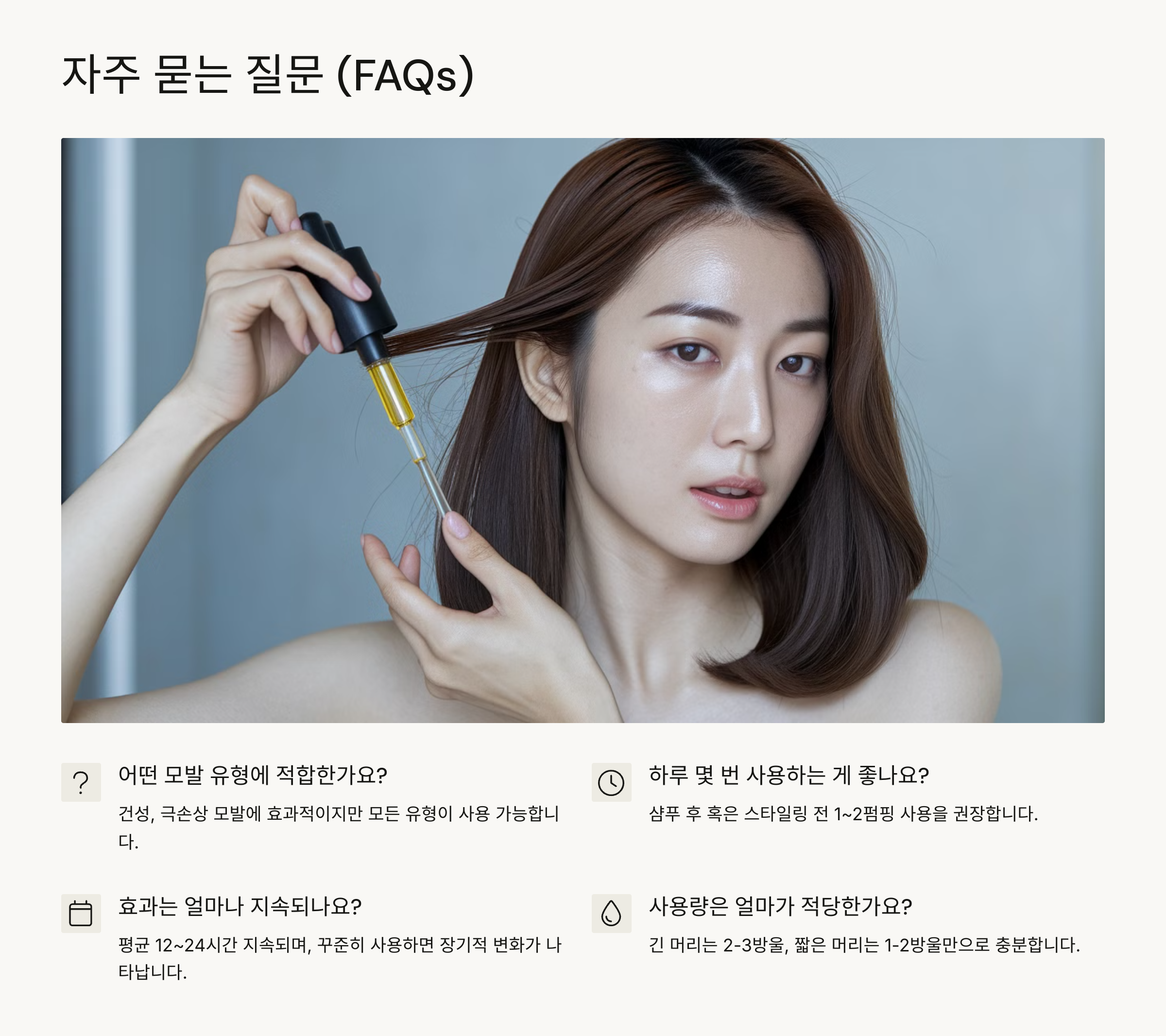 🙋♀️ 이제 마지막 섹션인 ‘프리미엄 헤어 오일 관련 FAQ’로 넘어갈게요! 실시간으로 궁금해하는 질문들, 바로 아래에서 확인해보세요 ✨