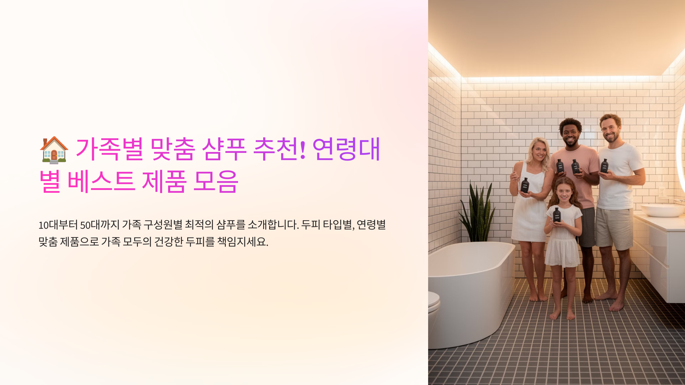 그다음 섹션에서는 ‘남편, 아내, 아이’ 각자 두피 고민에 맞춘 샴푸 선택 팁을 알려드릴게요! 가족 개개인별로 맞는 제품을 알고 싶다면 꼭 참고해보세요! ✨