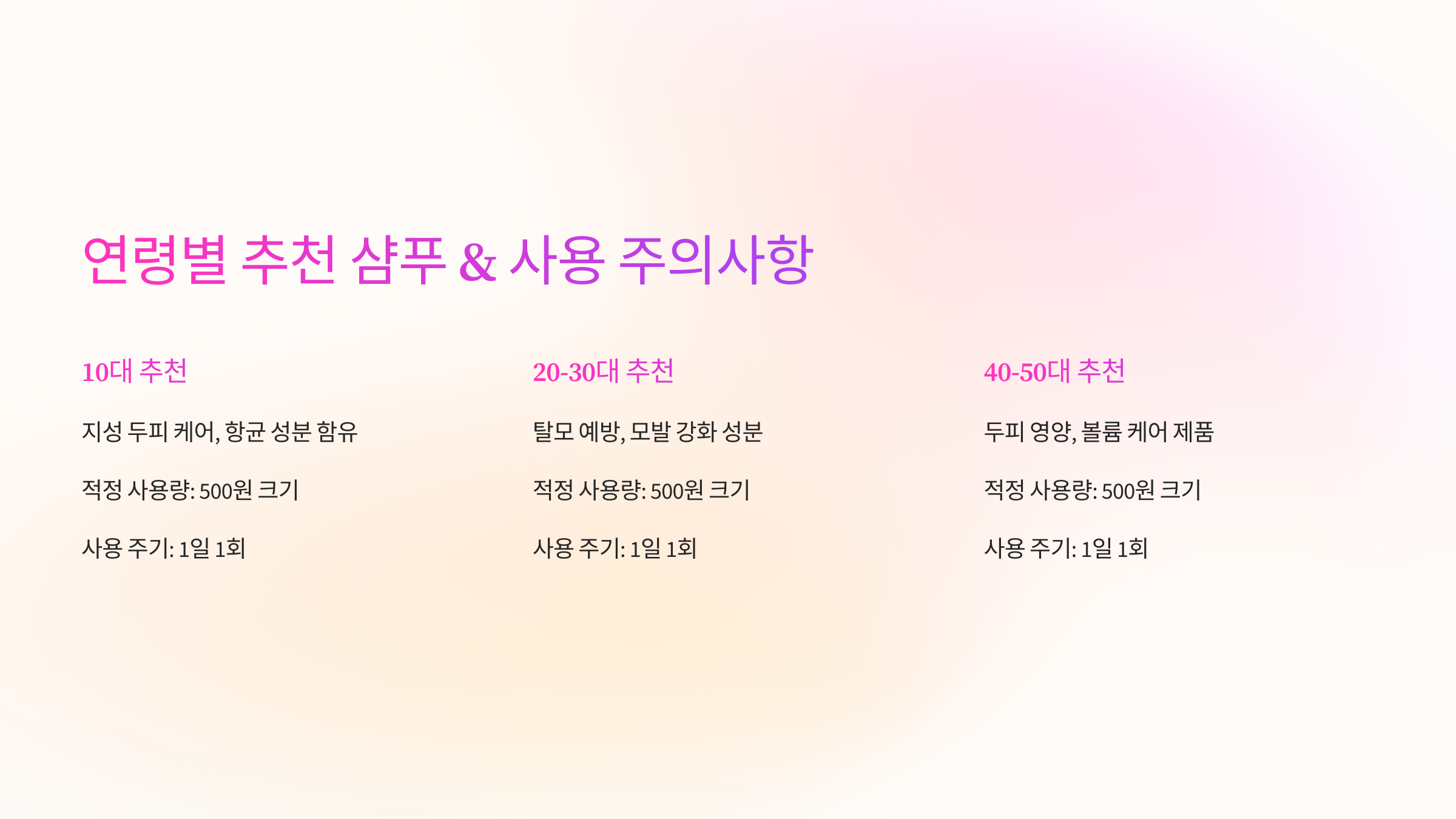 📌 연령대별 샴푸 사용법 요약표