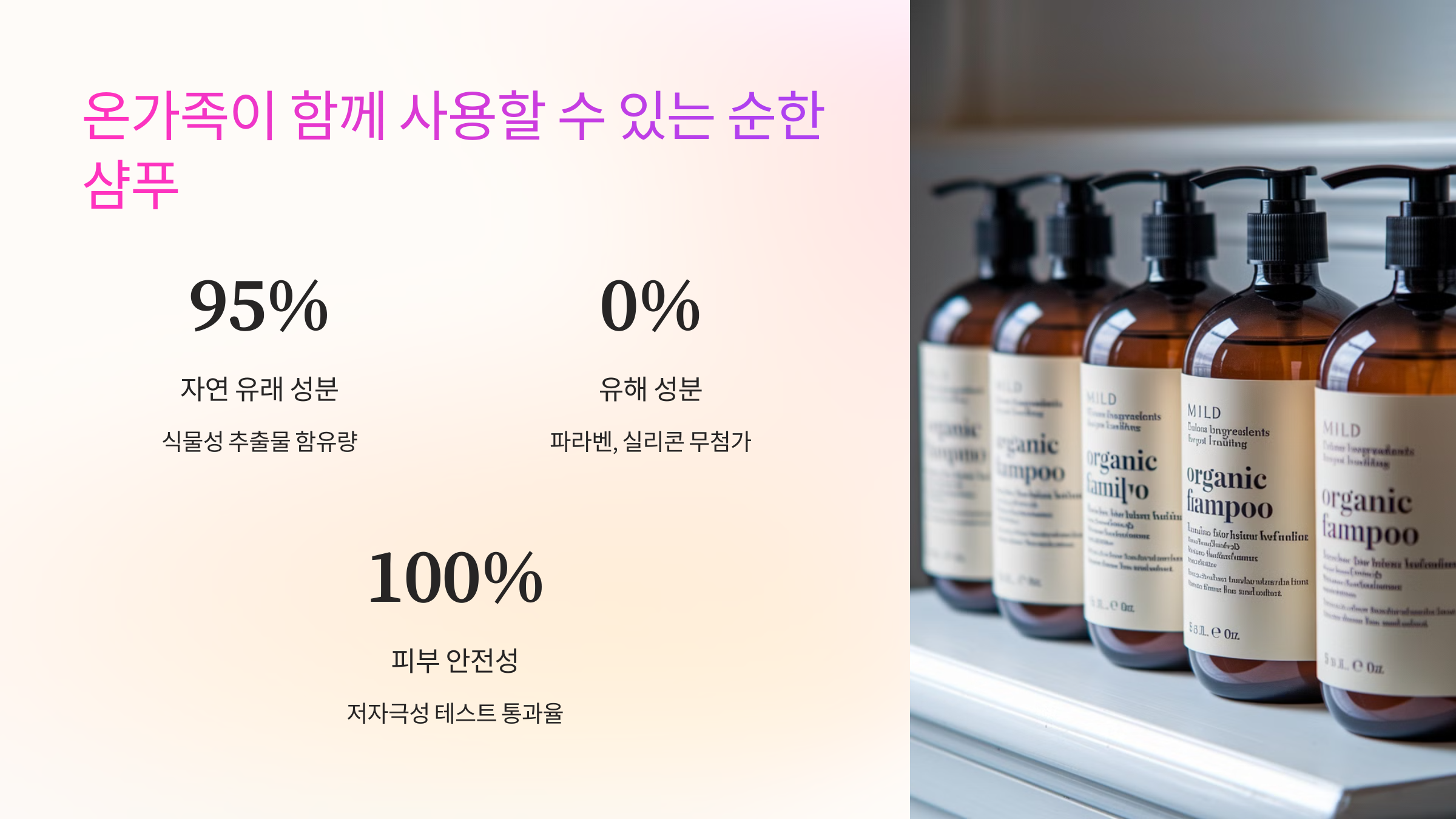 어린 자녀가 있다면 저자극, 무향료, 무실리콘 제품을 사용하는 게 안전하고요, 어른들은 기능성 중심으로 챙기면 만족도가 높답니다. 다음은 민감한 피부에도 안심하고 쓸 수 있는 온가족용 순한 샴푸들을 소개할게요! 👨👩👧