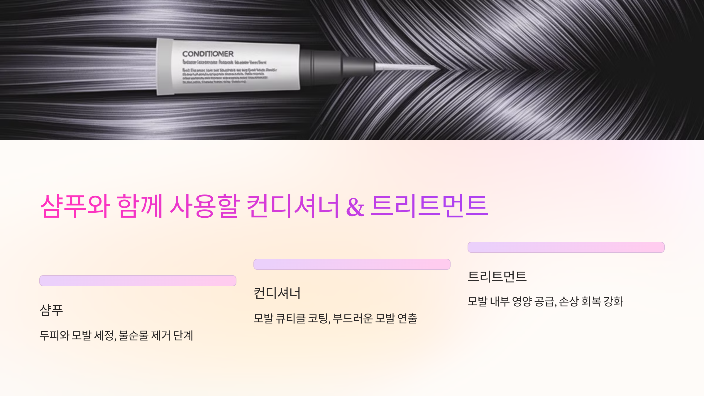 이제 컨디셔너나 트리트먼트 같은 함께 쓰면 좋은 제품도 소개해볼게요! 샴푸와 궁합이 잘 맞는 아이템들로 효과를 높여봐요. ✨