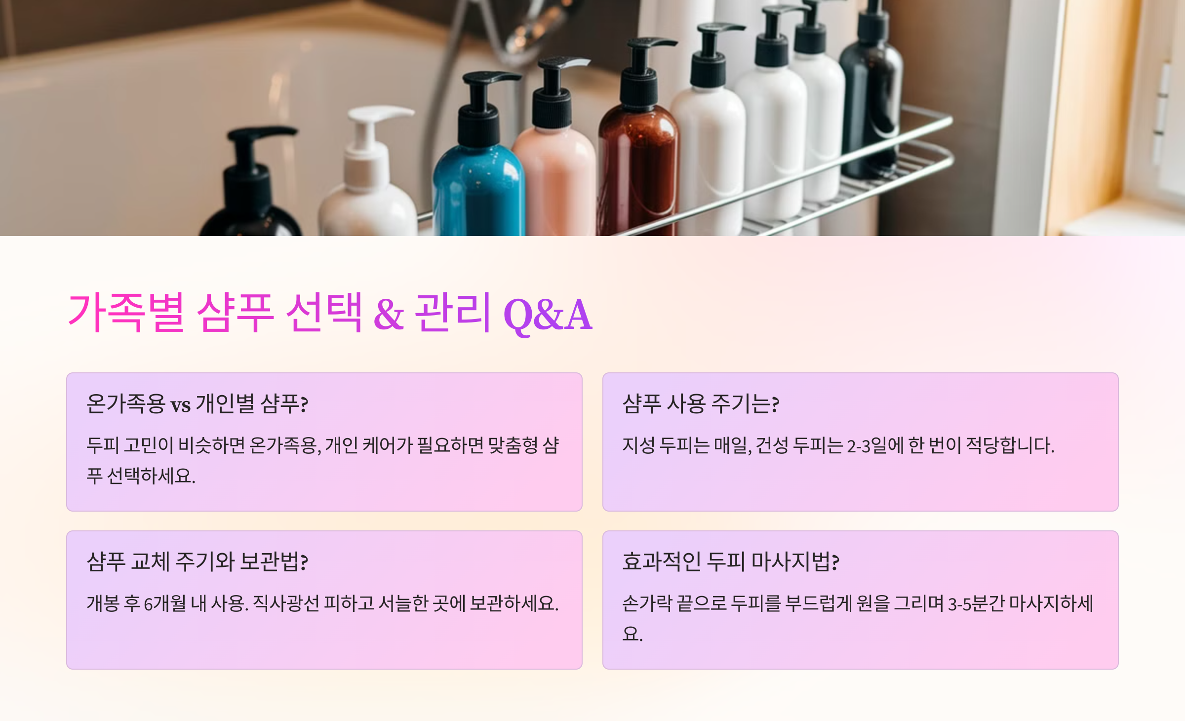 이제 마지막으로, 여러분이 자주 궁금해하는 샴푸 관련 질문들을 모은 FAQ 섹션으로 마무리해볼게요! 정말 실용적인 질문들만 골라봤어요. 👇