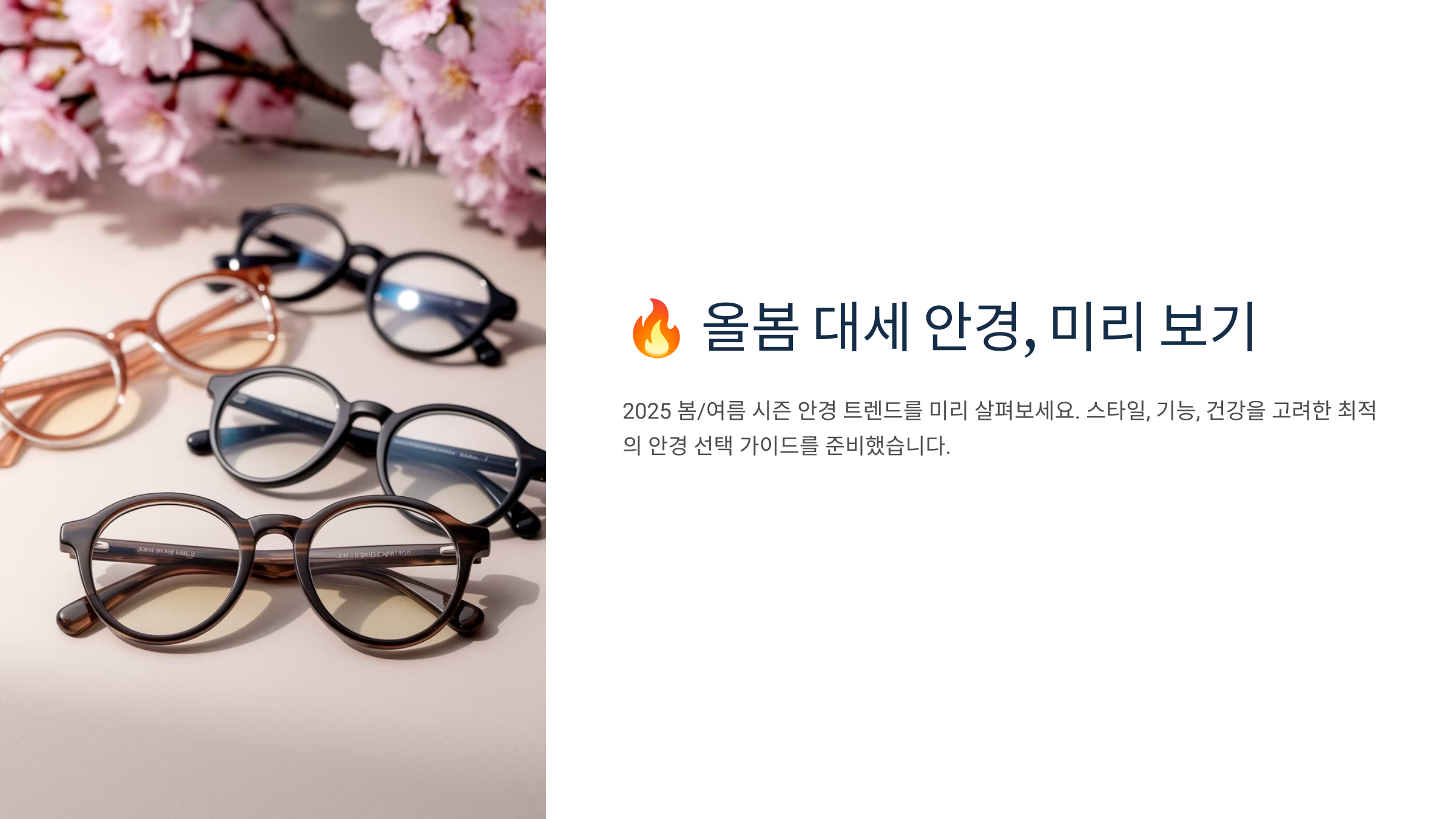 지금부터 봄 시즌 안경 트렌드를 제대로 준비하고 싶다면, 스크롤 천천히 내려보세요. 바로 아래부터 1문단씩 뜨겁게 시작해요! 🔥