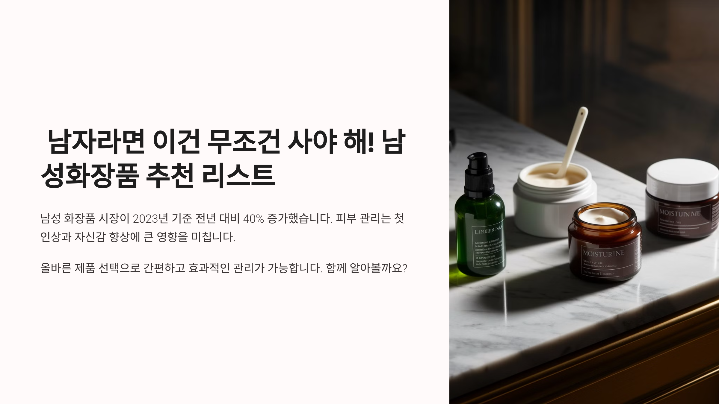 하지만 종류도 너무 많고, 뭘 골라야 할지 모르는 분들이 많죠? 그래서 오늘은 피부 타입별로 꼭 필요한 제품부터 올인원, 면도 후 케어, 비즈니스맨용 고급템, 향 좋은 바디케어까지 싹 정리해드릴게요.