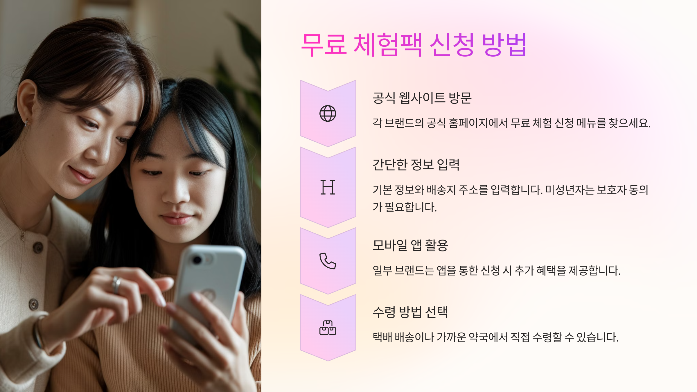 생리대 체험팩은 요즘 다양한 브랜드에서 온라인을 통해 무료로 신청할 수 있어요. 특히 우리 아이처럼 첫 생리를 준비하는 경우, 부모님 인증 또는 보호자 연락처만으로도 간편하게 신청 가능한 브랜드들이 많답니다. 체험 신청은 대부분 브랜드 공식 홈페이지나 SNS 채널을 통해 진행돼요.