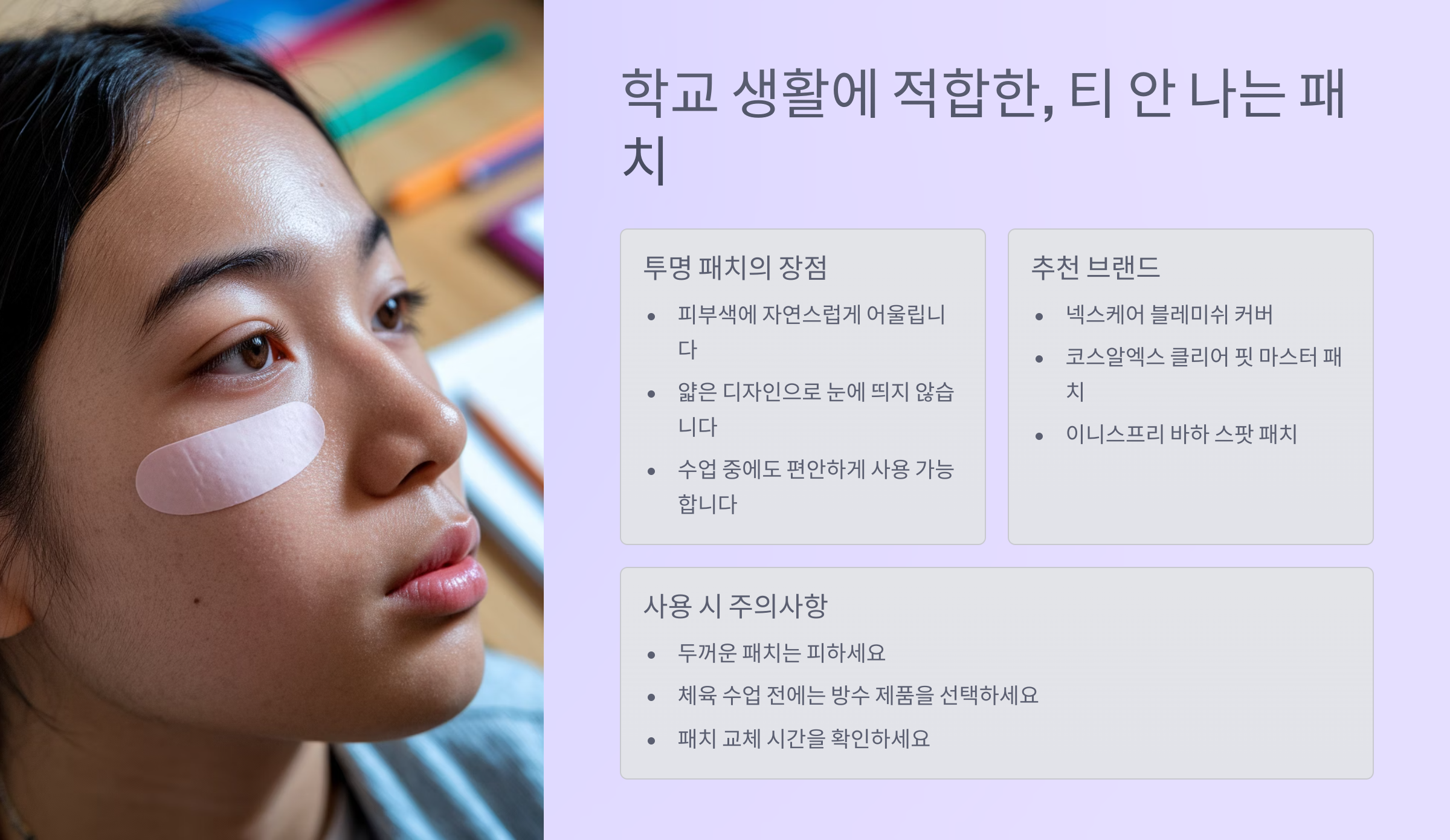이런 환경에서는 자극이 적고 흡수력이 좋은 여드름 패치를 사용하는 게 중요해요. 10대 전용이라면 두께가 얇고, 색상이 투명하거나 피부 톤에 가까운 것이 좋아요. 그래야 학교에서도 눈에 띄지 않고 부담 없이 사용할 수 있죠.
