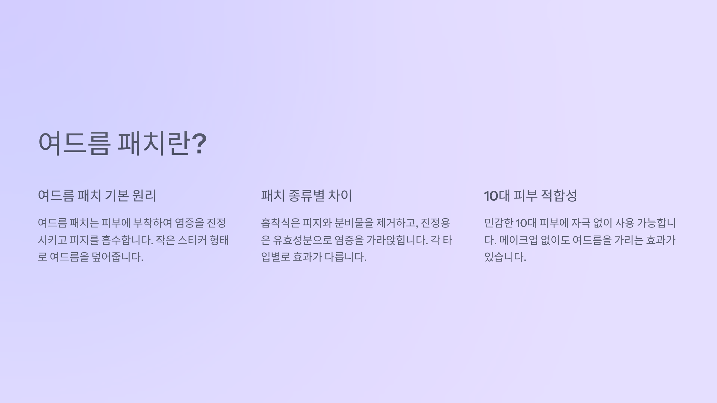 내가 생각했을 때 여드름 패치는 단순히 트러블을 가리는 게 아니라, 염증을 진정시키고 흉터로 발전하지 않도록 도와주는 역할이 핵심이에요. 그래서 무조건 두꺼운 것보단 얇고 효과적인 성분이 포함된 제품을 골라야 해요.