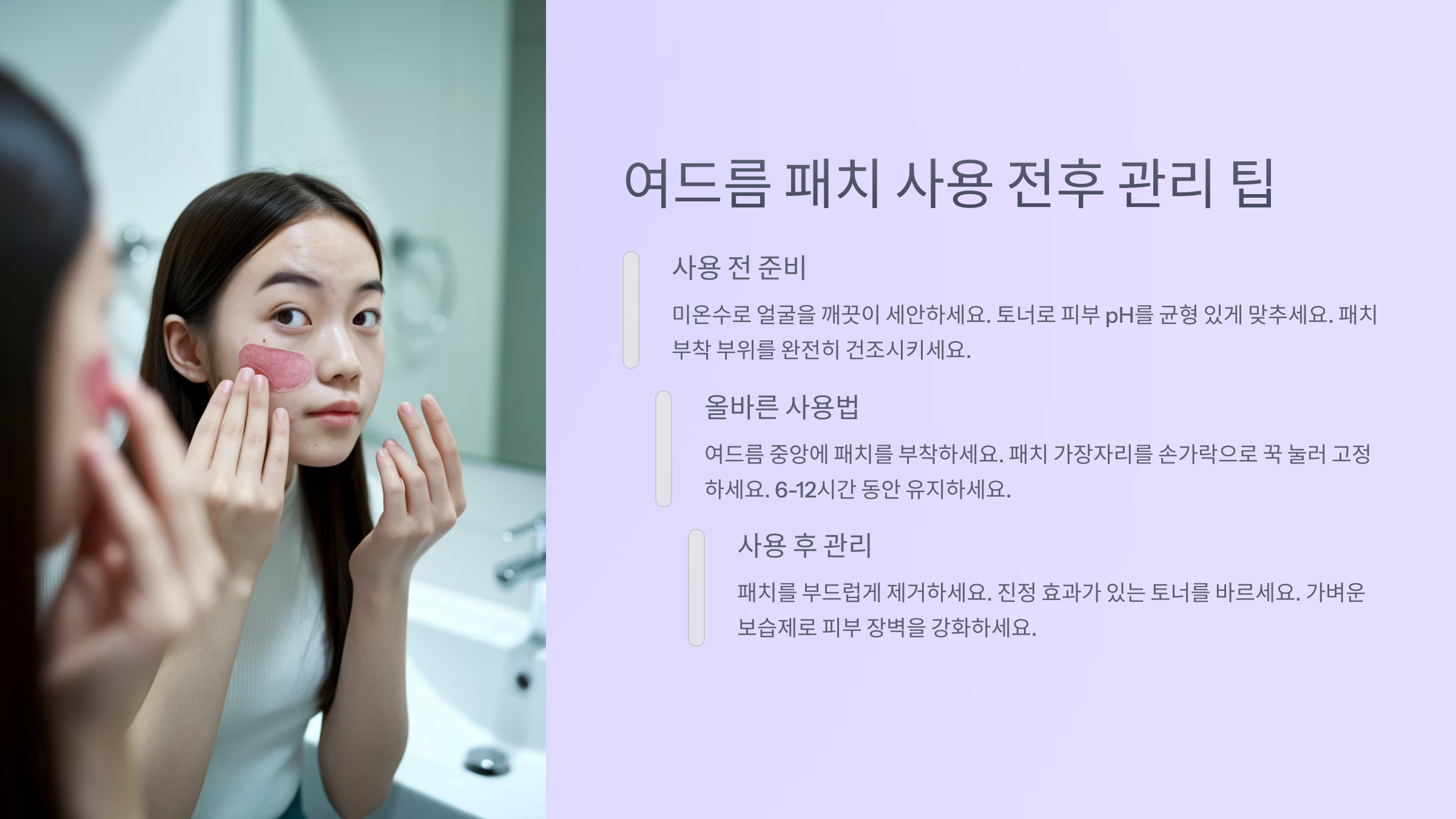 여드름 패치, 아무렇게나 붙이면 효과가 떨어질 수 있어요! 제대로 사용하면 더 빠르고 깨끗하게 트러블을 진정시킬 수 있답니다. 지금부터 여드름 패치를 붙이기 전과 후, 어떻게 관리하면 좋을지 알려줄게요. 😊