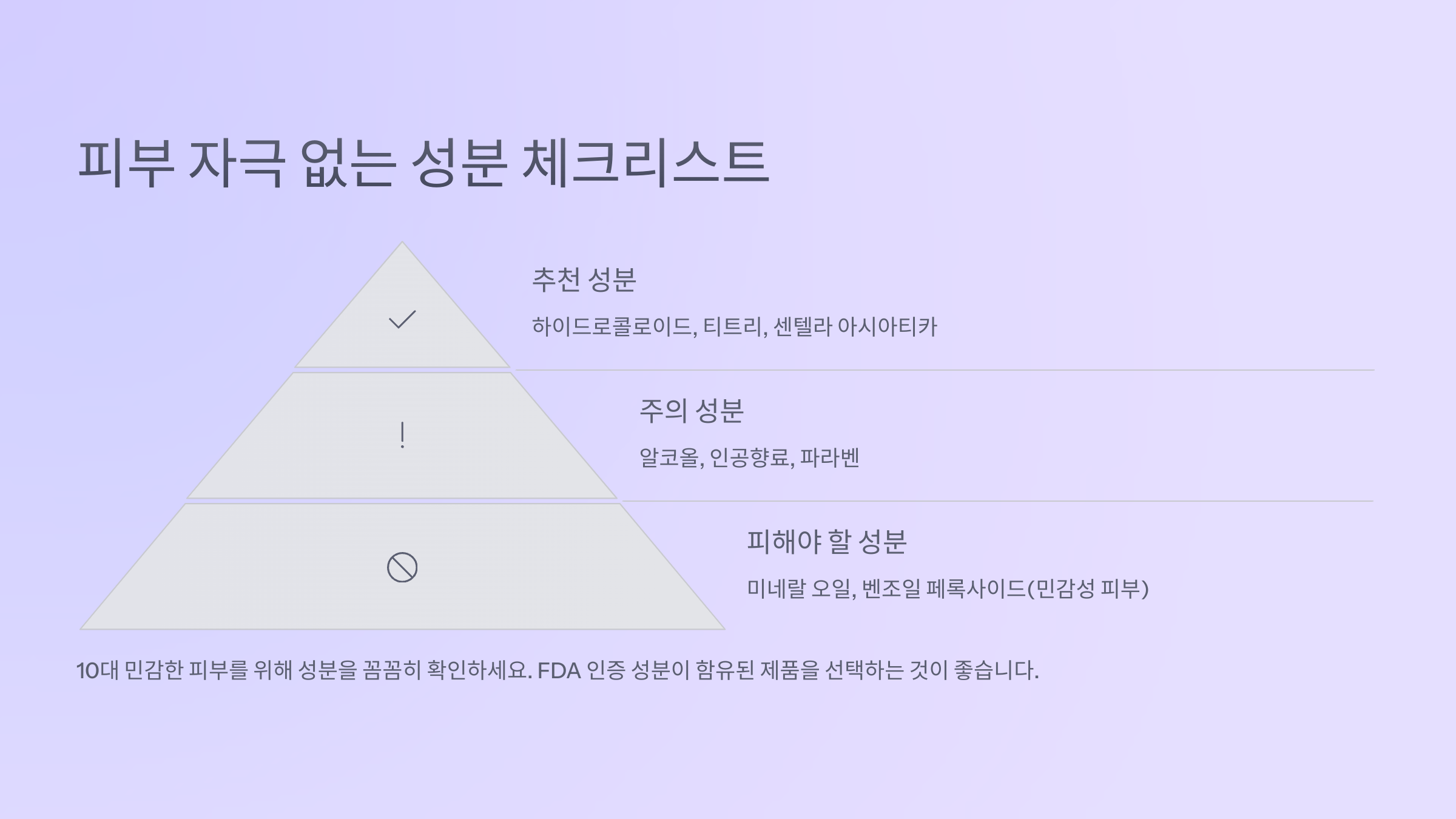 10대 친구들이라면 되도록이면 무향, 무색소, 저자극 테스트를 통과한 제품을 선택해보세요. 특히 제품 뒷면에 ‘EWG 그린 등급’이라고 표시된 성분이면 더 안전하답니다. 😊