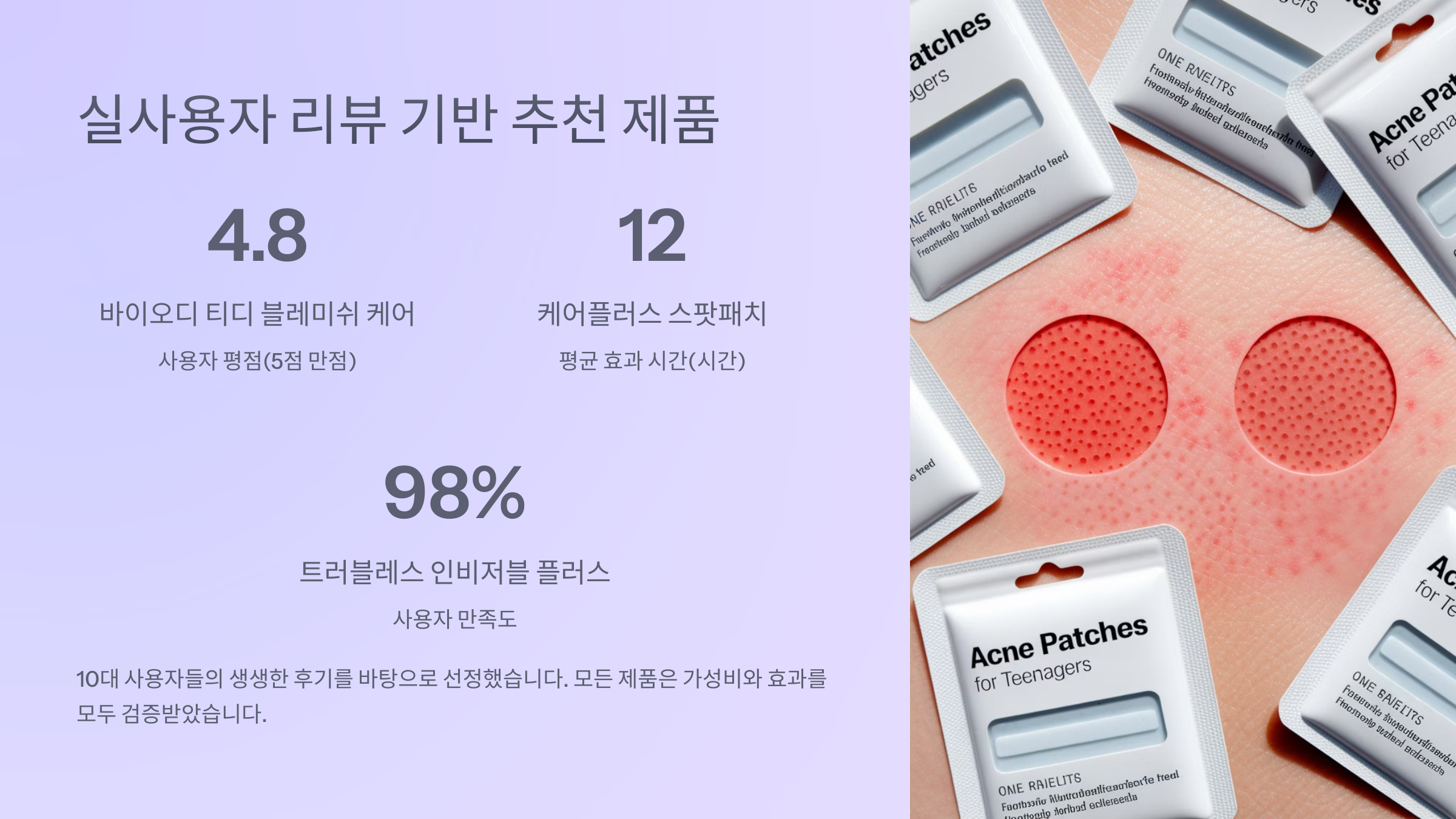 실제로 써본 사람들이 어떤 여드름 패치를 좋다고 했을까? 리뷰는 진짜 사용감과 만족도를 알 수 있는 좋은 기준이에요! 오늘은 온라인 쇼핑몰과 커뮤니티, SNS에서 꾸준히 높은 평점을 받은 10대용 여드름 패치 브랜드를 소개할게요. 💯