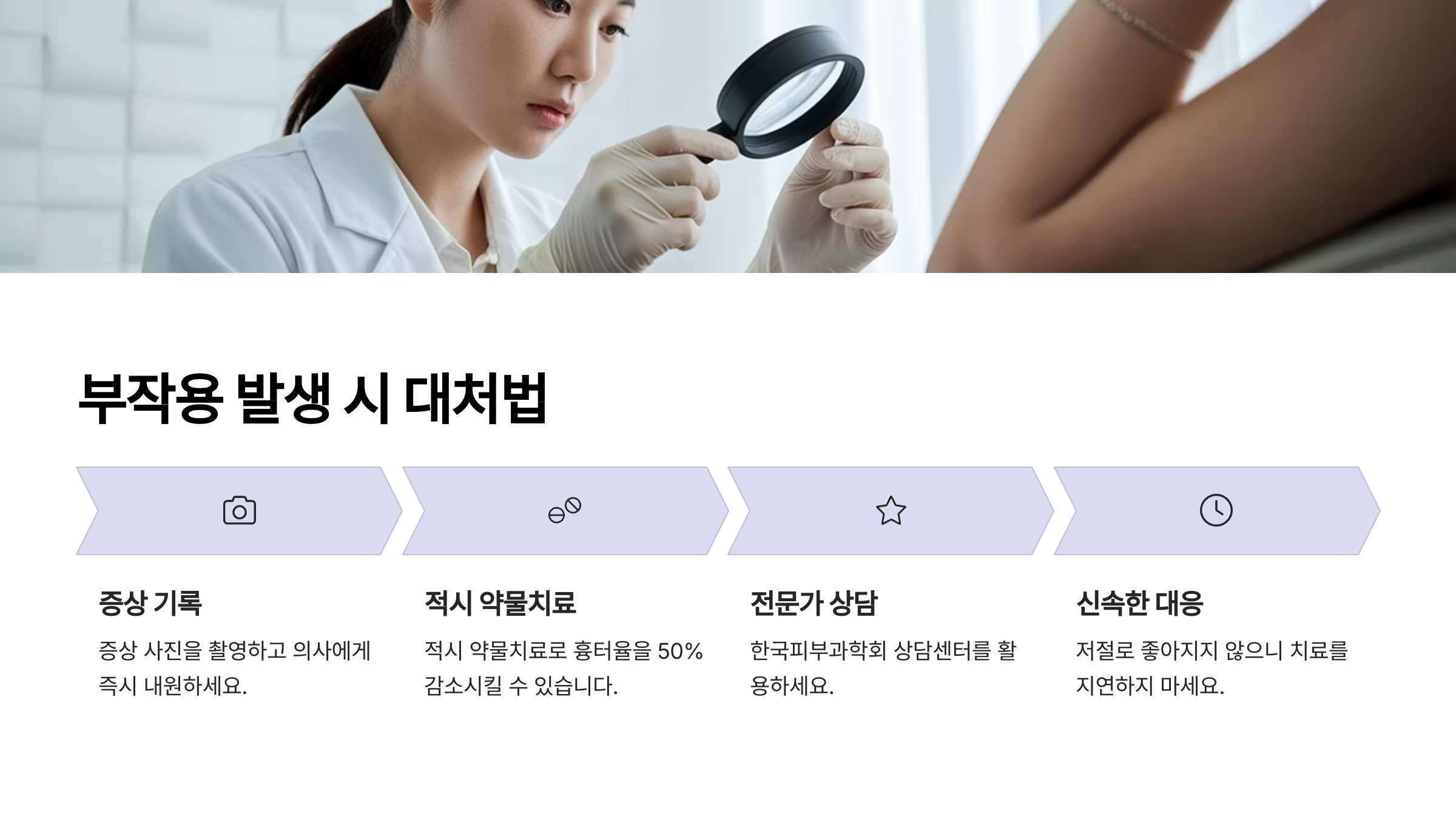 | 가려움·두드러기 | 항히스타민 복용, 진정 연고 |