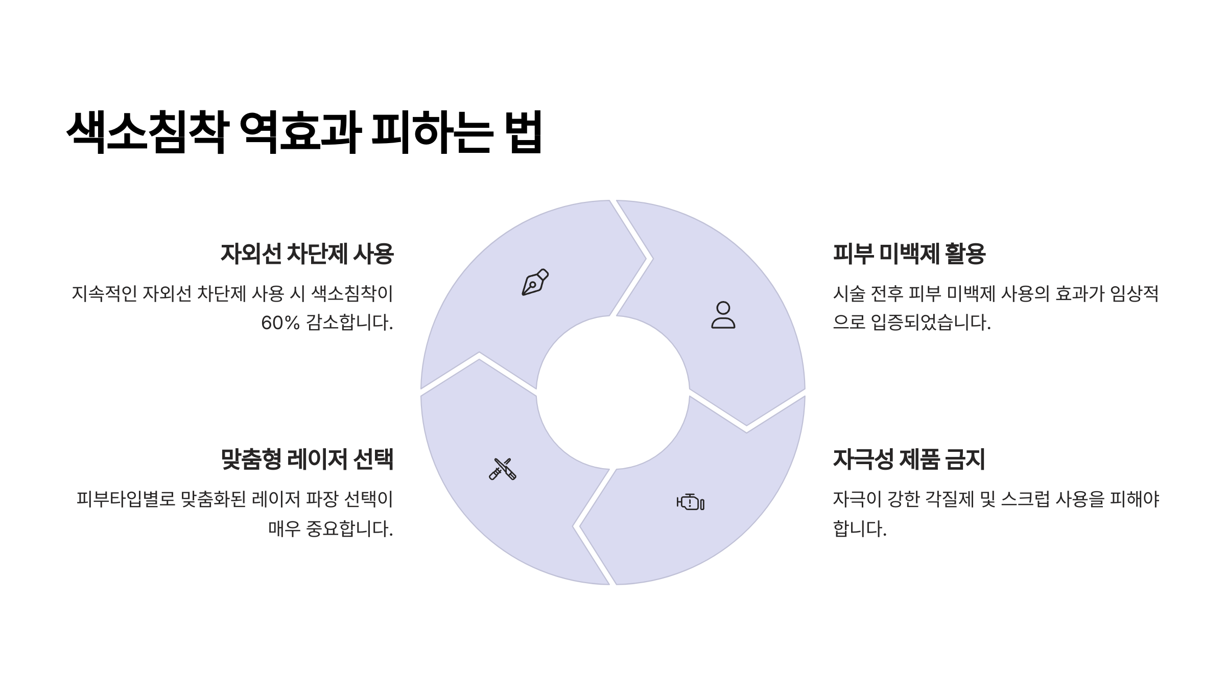 색소침착은 한 번 생기면 없애는 데 오랜 시간이 걸려요. 그래서 사전 예방이 훨씬 더 중요하다는 거, 꼭 기억하세요!