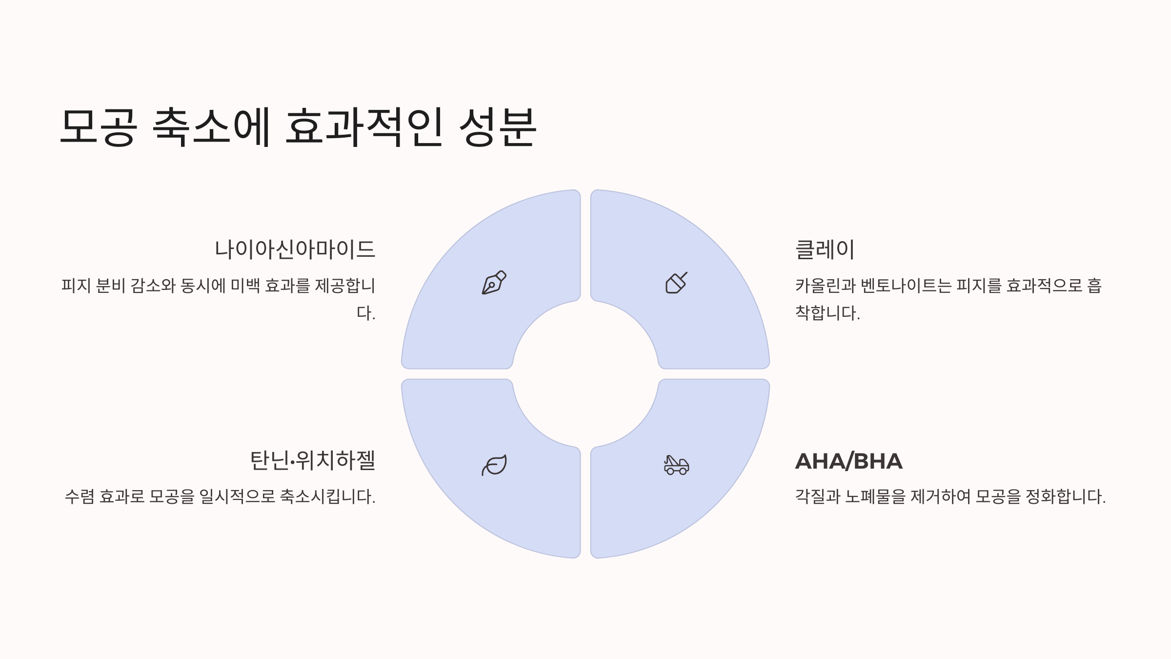 모공 축소를 위한 제품을 고를 때 성분을 꼼꼼히 보는 건 정말 중요해요. 그냥 시원하거나 조이는 느낌만 있다고 좋은 건 아니거든요. 👀