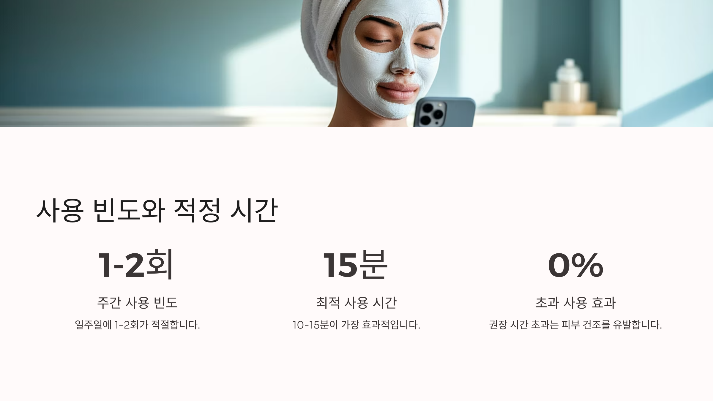 시간을 초과하면 오히려 피부에 자극이 가고, 필요한 수분과 영양이 오히려 뺏기게 돼요. 그래서 타이머 맞추고 사용해보는 걸 정말 추천해요. ⏲️