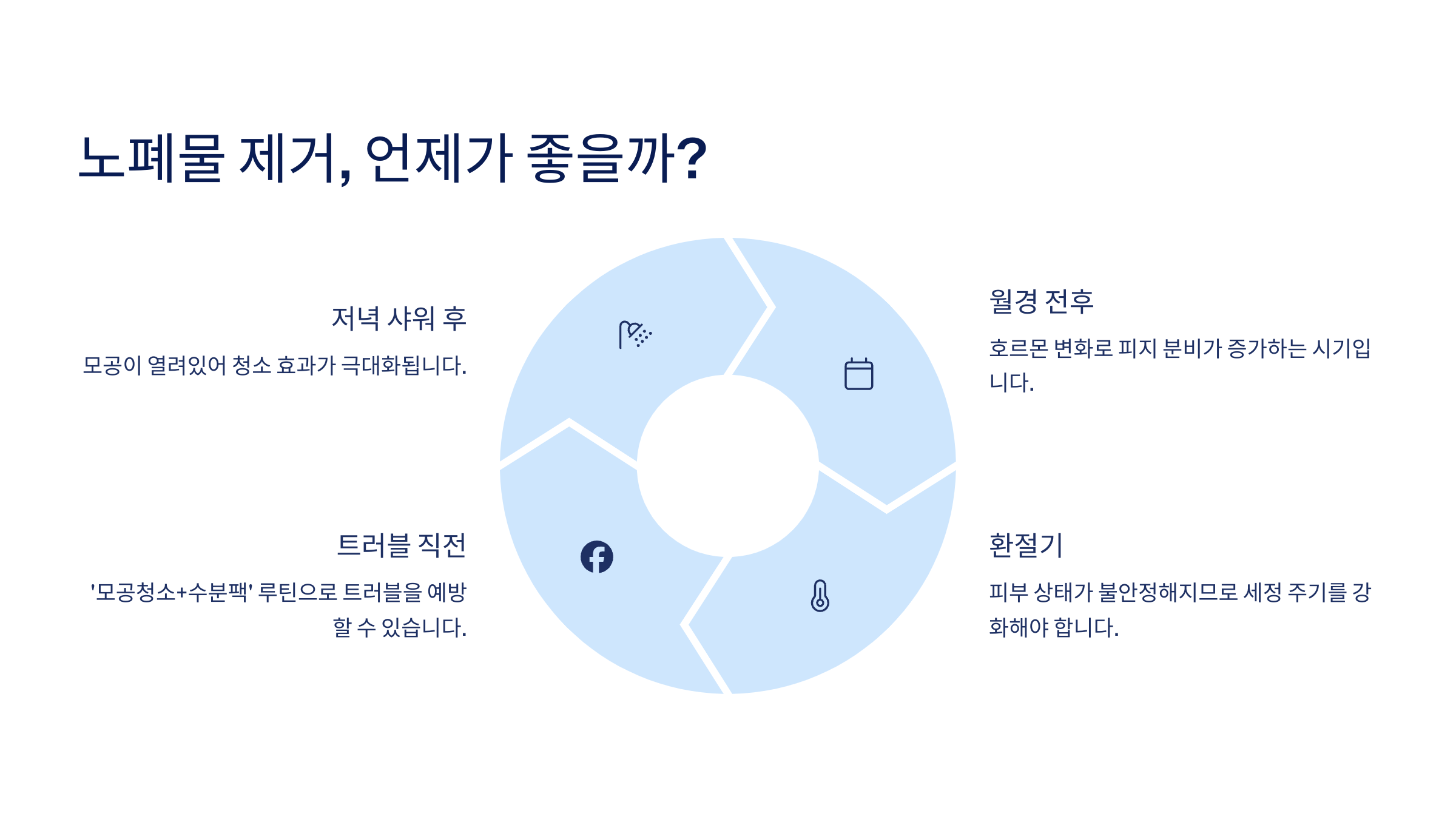 이제 피부 표면과 모공 속까지 깔끔하게 정리했으니, 그 다음은 ‘언제’ 관리를 해야 하는지, 관리 타이밍을 알아봐야 해요. 바로 다음 섹션에서 노폐물 제거 시기를 알려드릴게요 ⏰