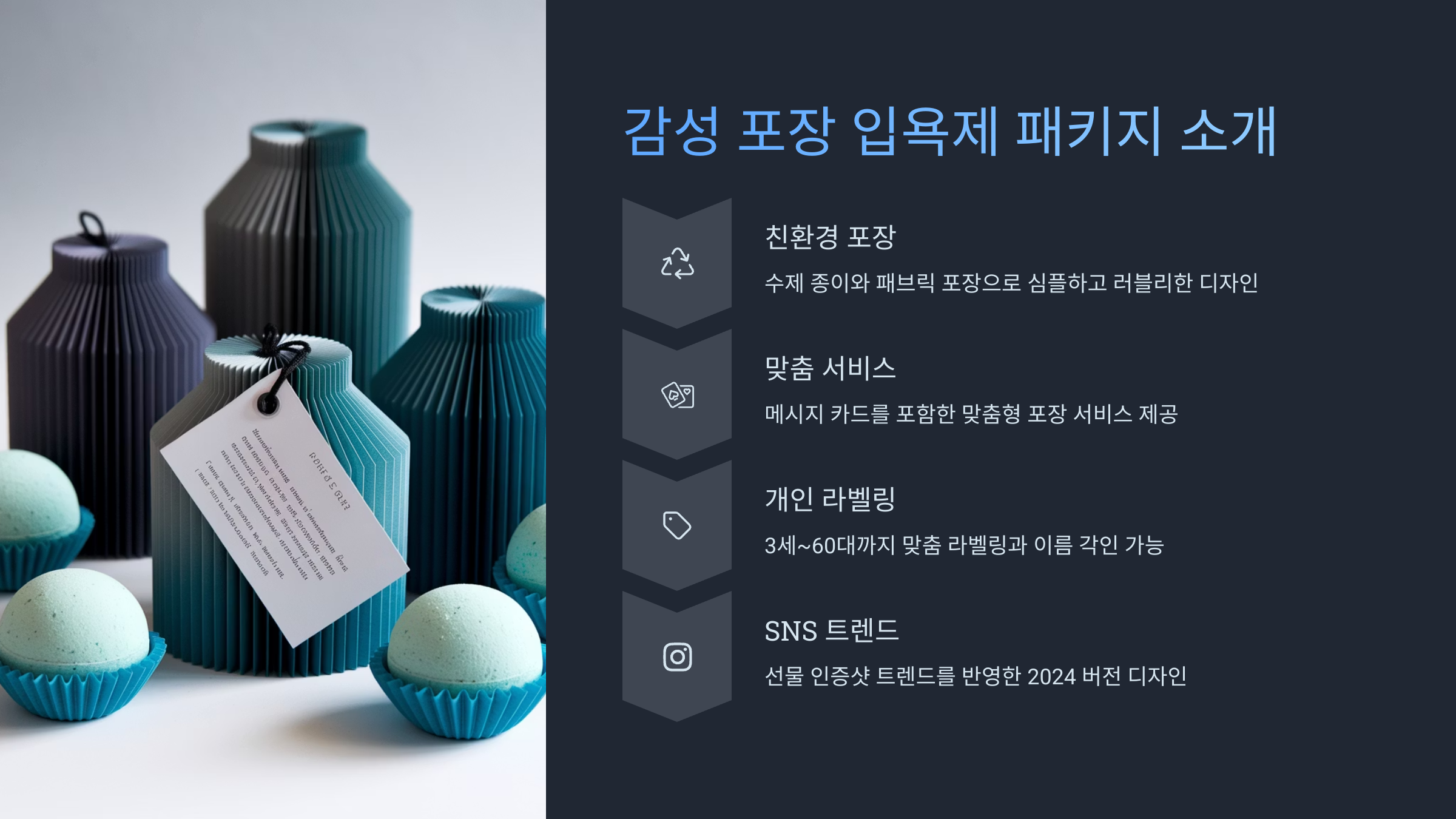 입욕제를 선물할 때 가장 먼저 눈에 들어오는 건 바로 포장이에요. 요즘은 감성을 자극하는 고급스러운 포장이 대세랍니다. 🛍️