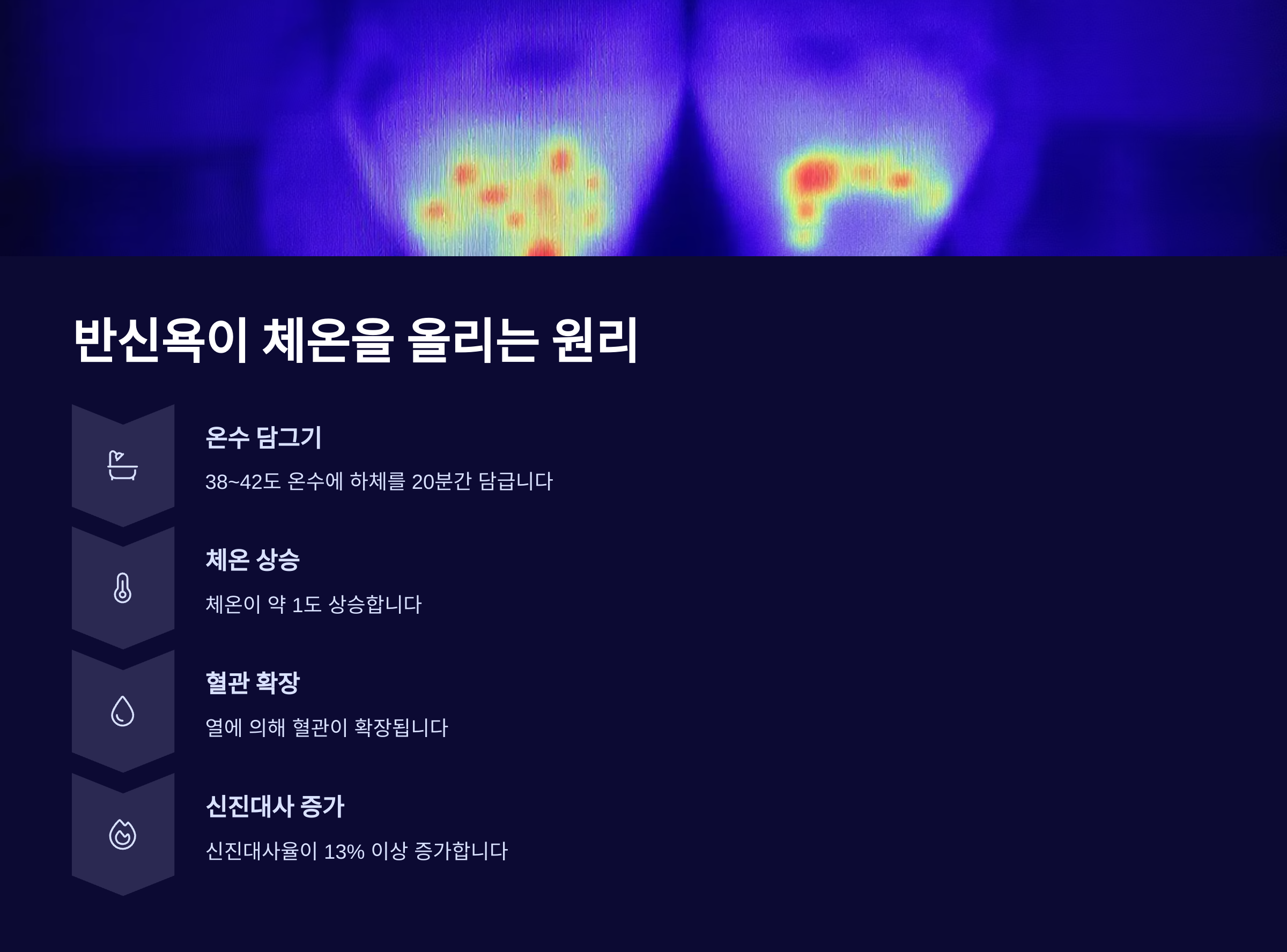 특히 하체는 인체 전체 혈액량의 약 70%를 담당하는데, 하체가 따뜻해지면 이 많은 혈액이 데워져 전신에 열을 퍼뜨려요. 그래서 굳이 상체를 담그지 않아도 체온이 올라가는 거랍니다. 정말 신기하죠?