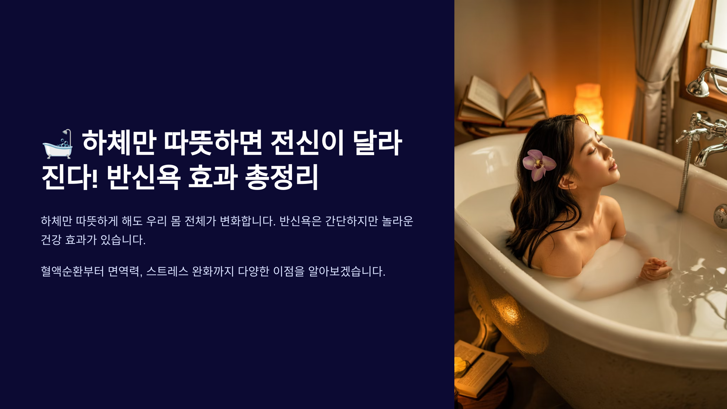 일상생활에서 쉽게 실천할 수 있는 반신욕, 단순히 몸을 담그는 것 이상의 과학적 원리가 숨어 있답니다. 특히 요즘처럼 스트레스가 많은 현대인에게 반신욕은 필수 셀프케어로 떠오르고 있어요. 오늘은 반신욕의 체온 상승 메커니즘부터, 왜 몸과 마음 모두를 치유하는지 총정리해볼게요! 🔥