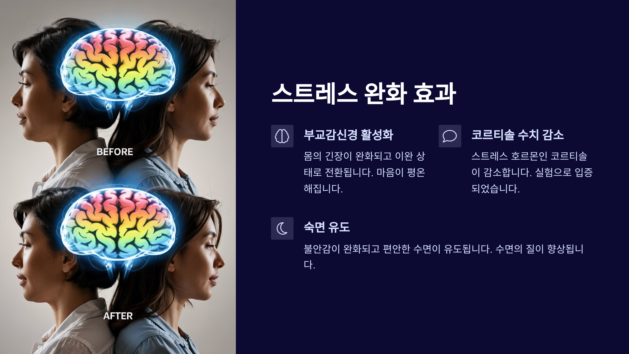 | 3. 부교감신경 활성화 | 스트레스 완화 및 면역 상승 |