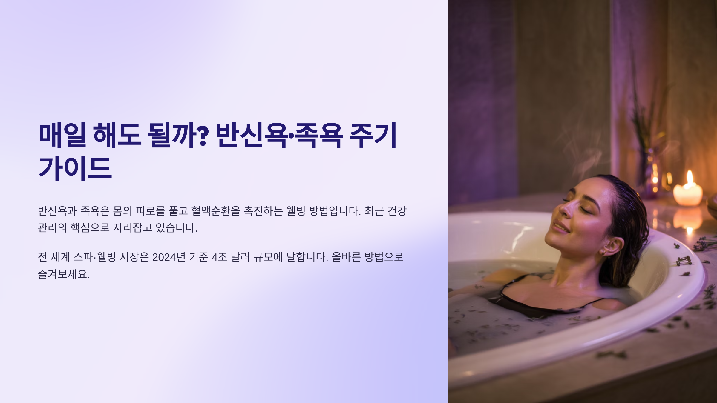 정리하면, 꾸준하지만 무리 없는 주기로 즐기는 것이 핵심이에요! 반신욕과 족욕을 잘 활용해서 피로를 풀고, 건강을 지키세요. 🥰