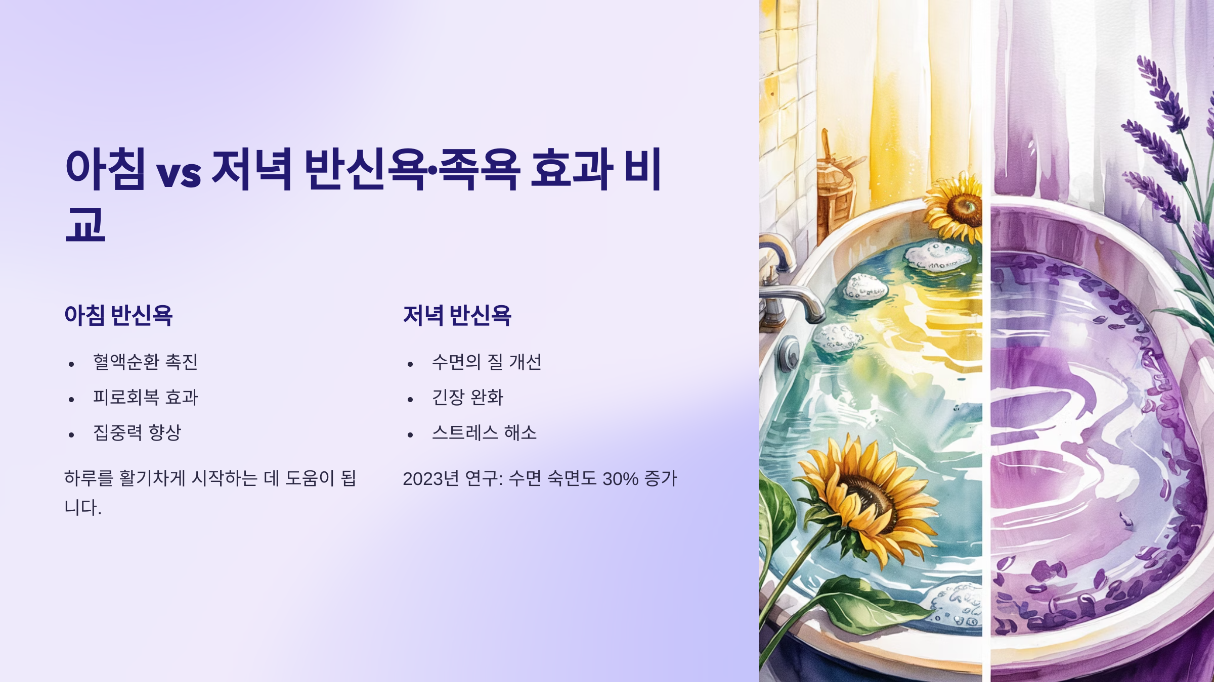 결론은, 아침이든 저녁이든 '목적'에 맞게 반신욕과 족욕을 활용하면 훨씬 효과적으로 건강 관리가 가능하다는 거예요. 여러분만의 루틴을 만들어보세요! 💖