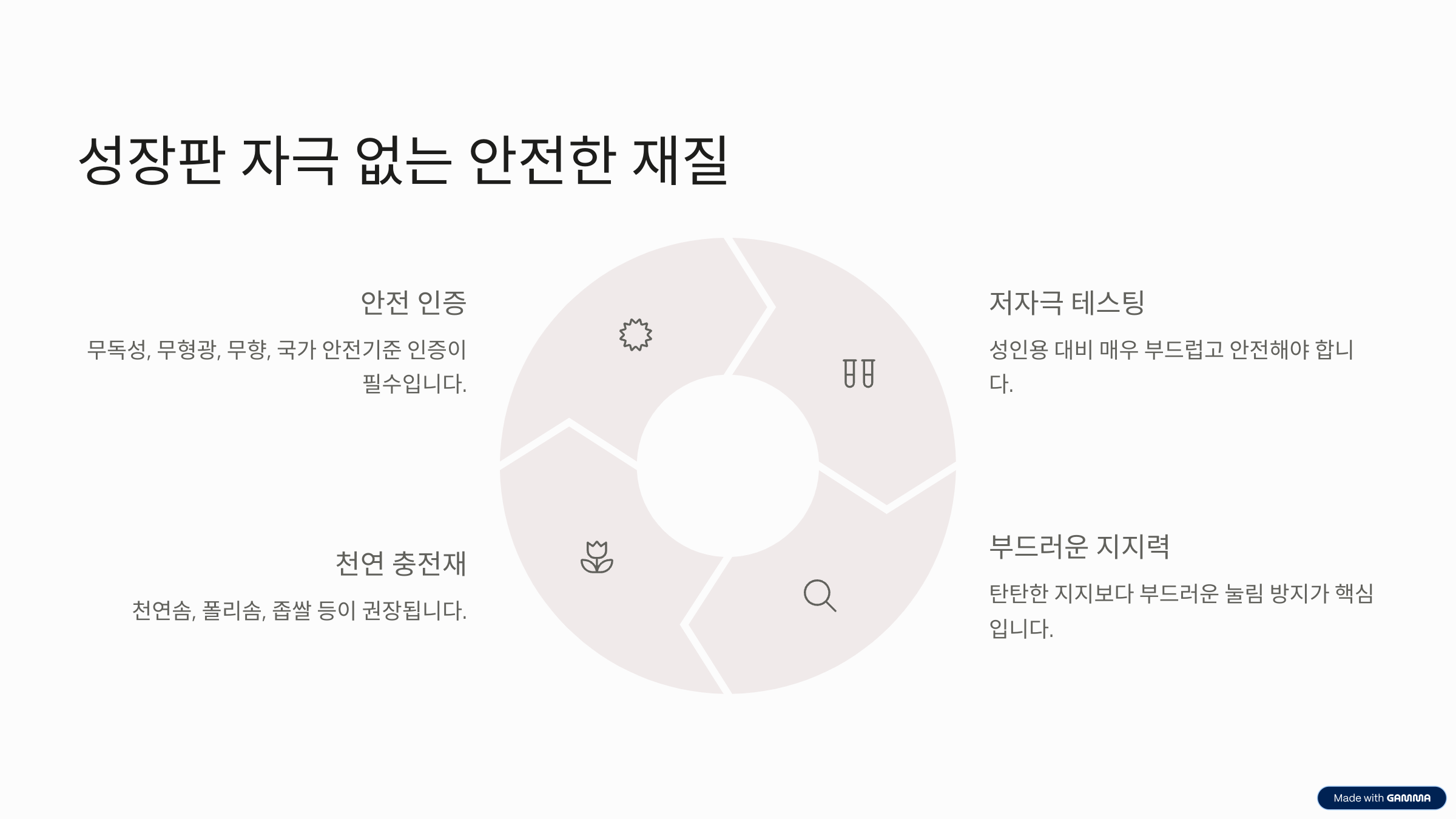 성장판 자극을 피하기 위해서는 너무 단단한 베개보다는 탄력 있는 유연한 소재를 고르는 것이 가장 중요해요.