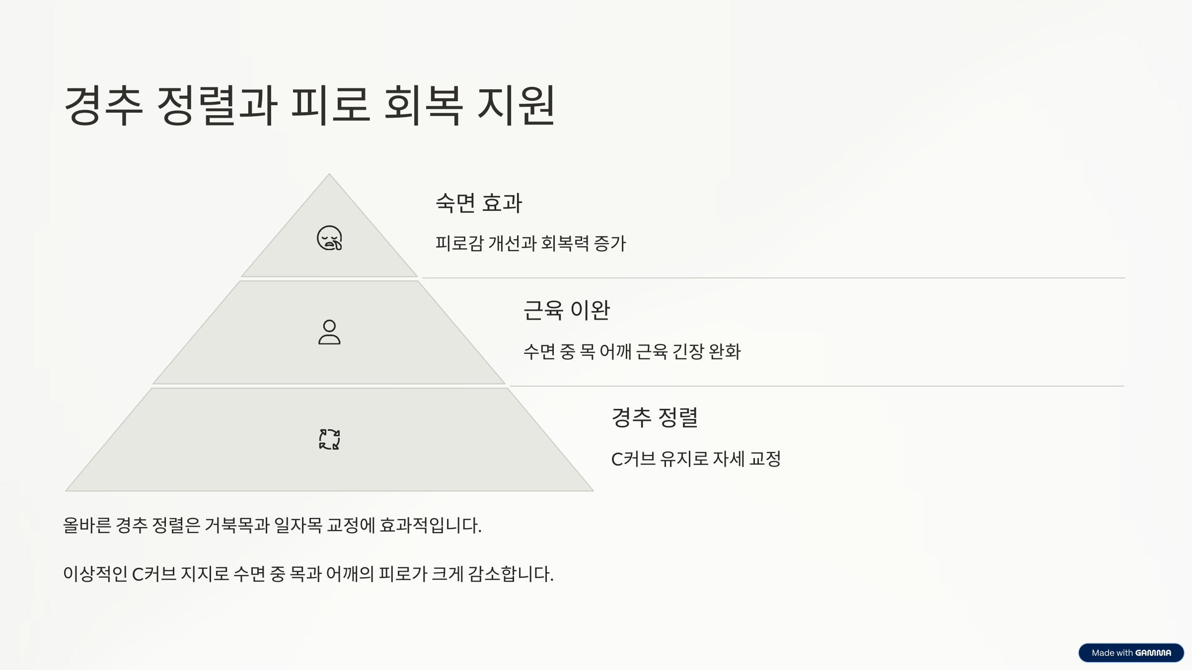 | 경추 정렬 | 자연스러운 C자 커브 유지 |