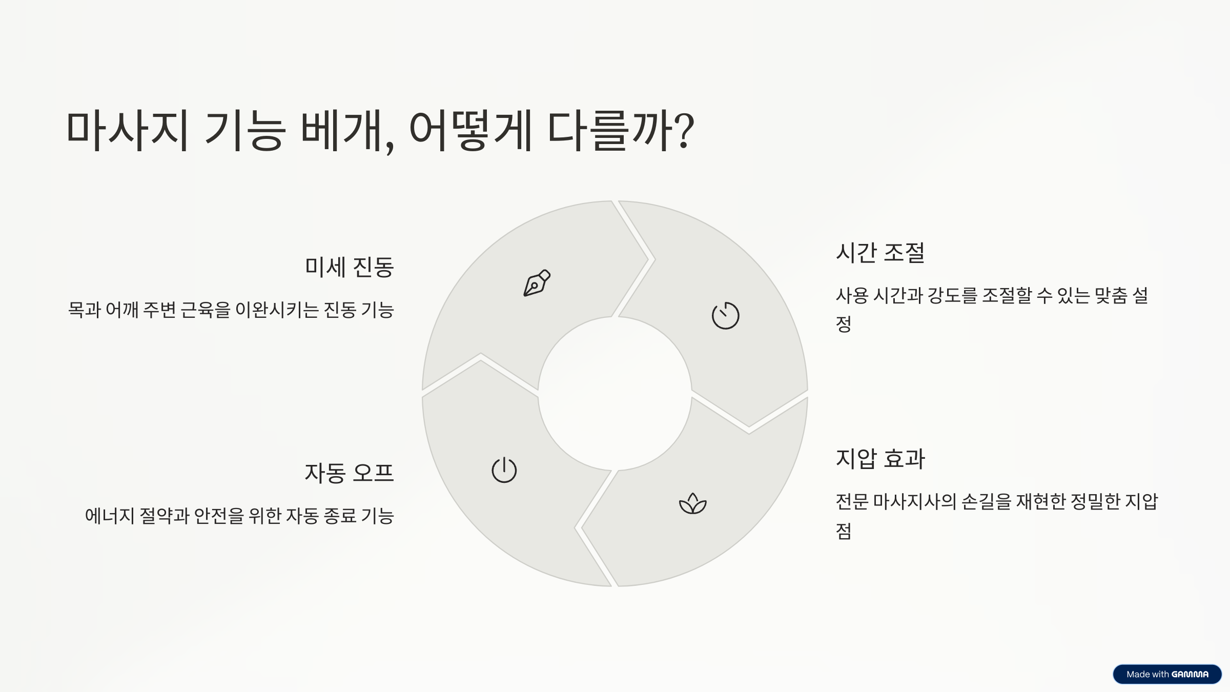 일부 프리미엄 제품은 타이머 기능, 세기 조절, 방향 조절까지 가능해서 거의 전문가의 손길 못지않은 효과를 보여줘요. 집에서 간편하게 매일 마사지를 받을 수 있다는 점에서 큰 장점이에요.
