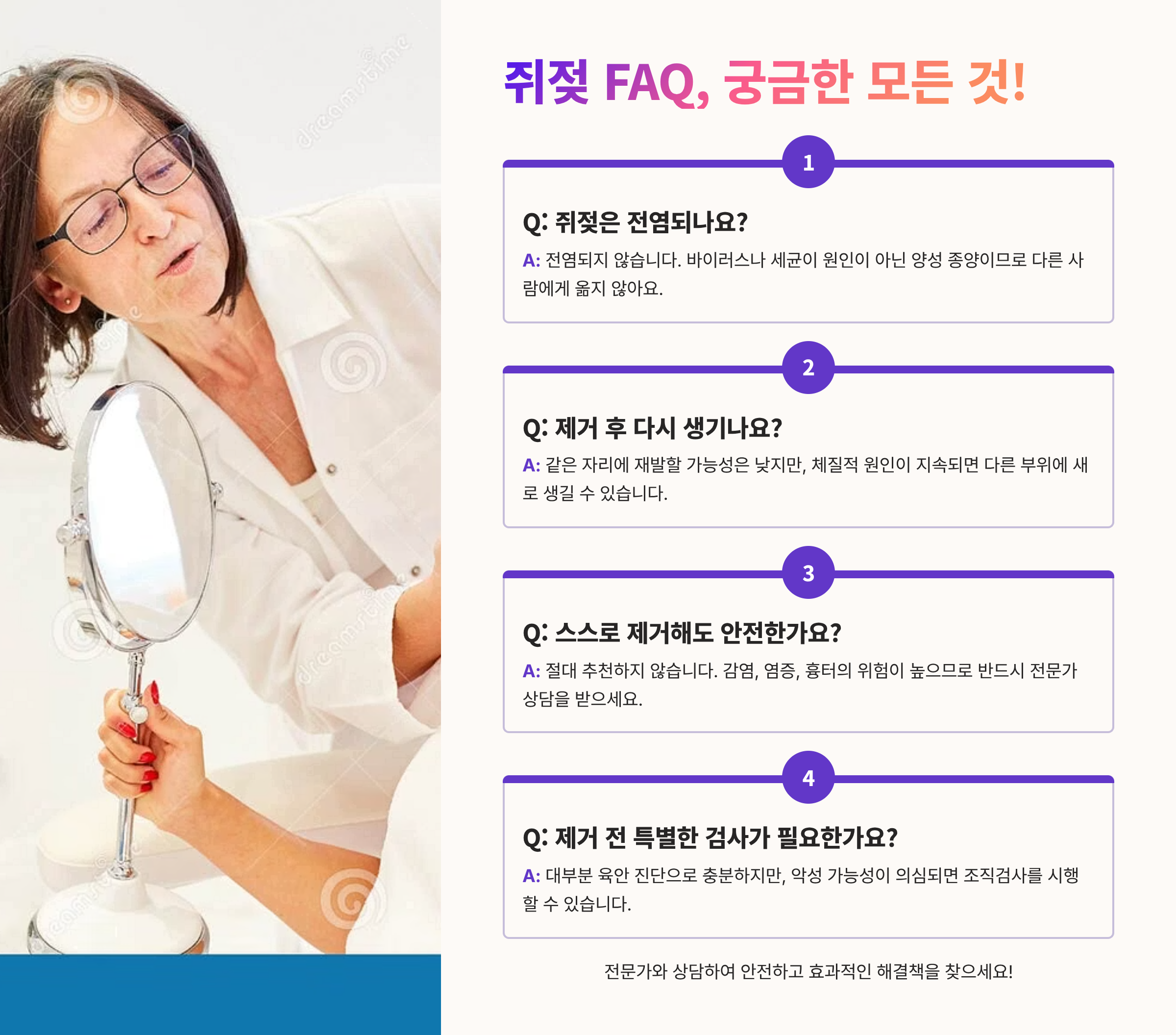 쥐젖에 대해 궁금해하는 분들을 위해 자주 묻는 질문과 답변을 정리했습니다. 이 정보를 통해 쥐젖에 대한 궁금증을 해소하고 올바른 대처 방법을 찾으시길 바랍니다.