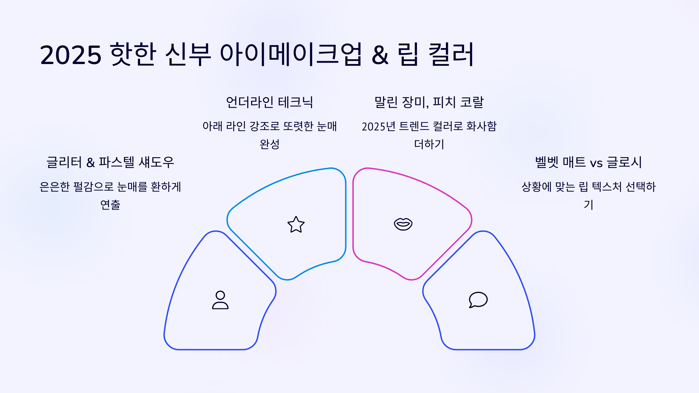 2025년에는 메이크업을 단순히 예뻐 보이기 위한 것이 아니라, 신부의 분위기와 컨셉을 극대화하는 도구로 생각하는 게 중요해요. 나를 가장 예쁘게 보여줄 ‘컬러 한 방울’ 꼭 찾아보세요!