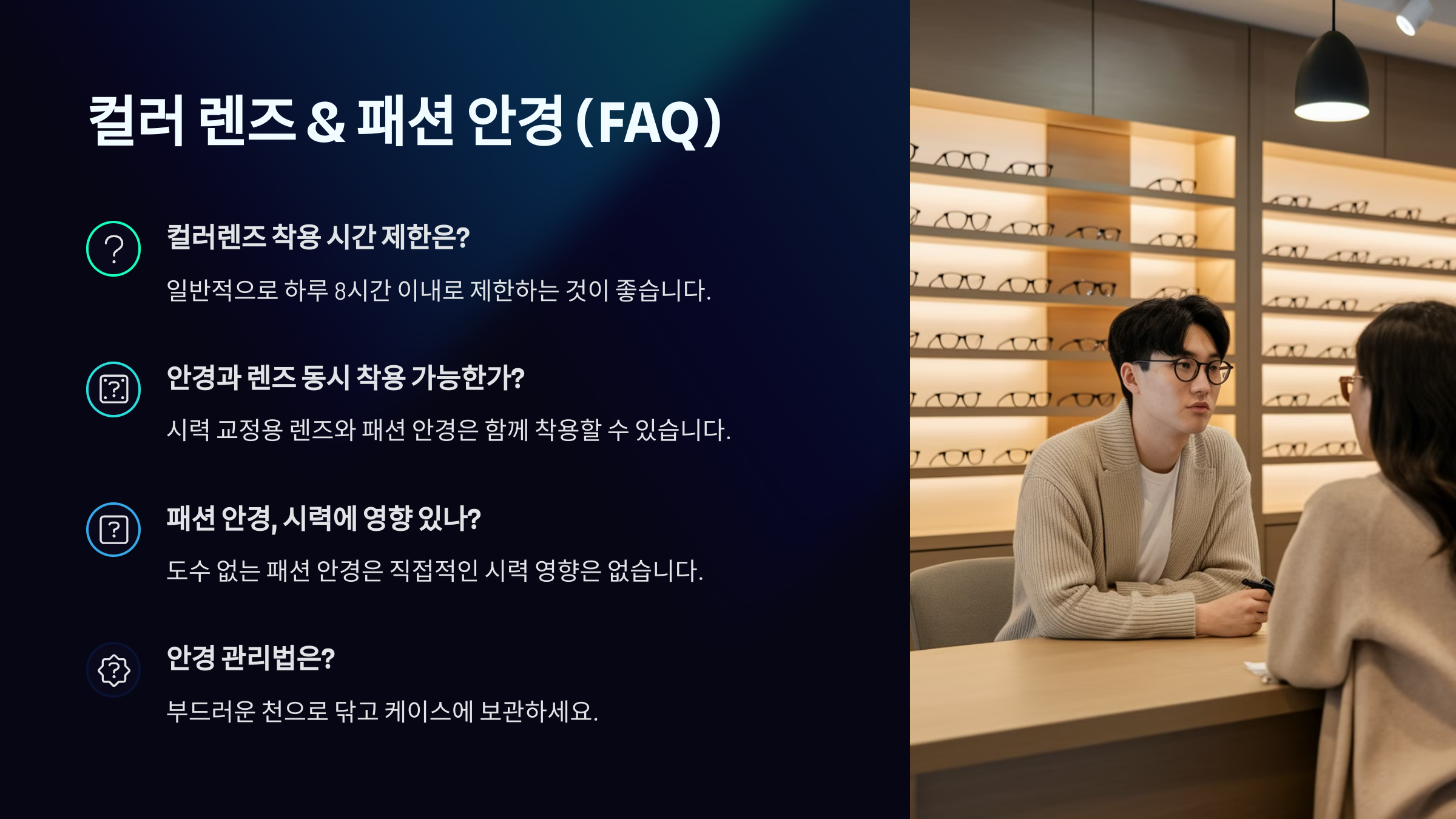 ❓ 컬러 렌즈 & 패션 안경 (FAQ)