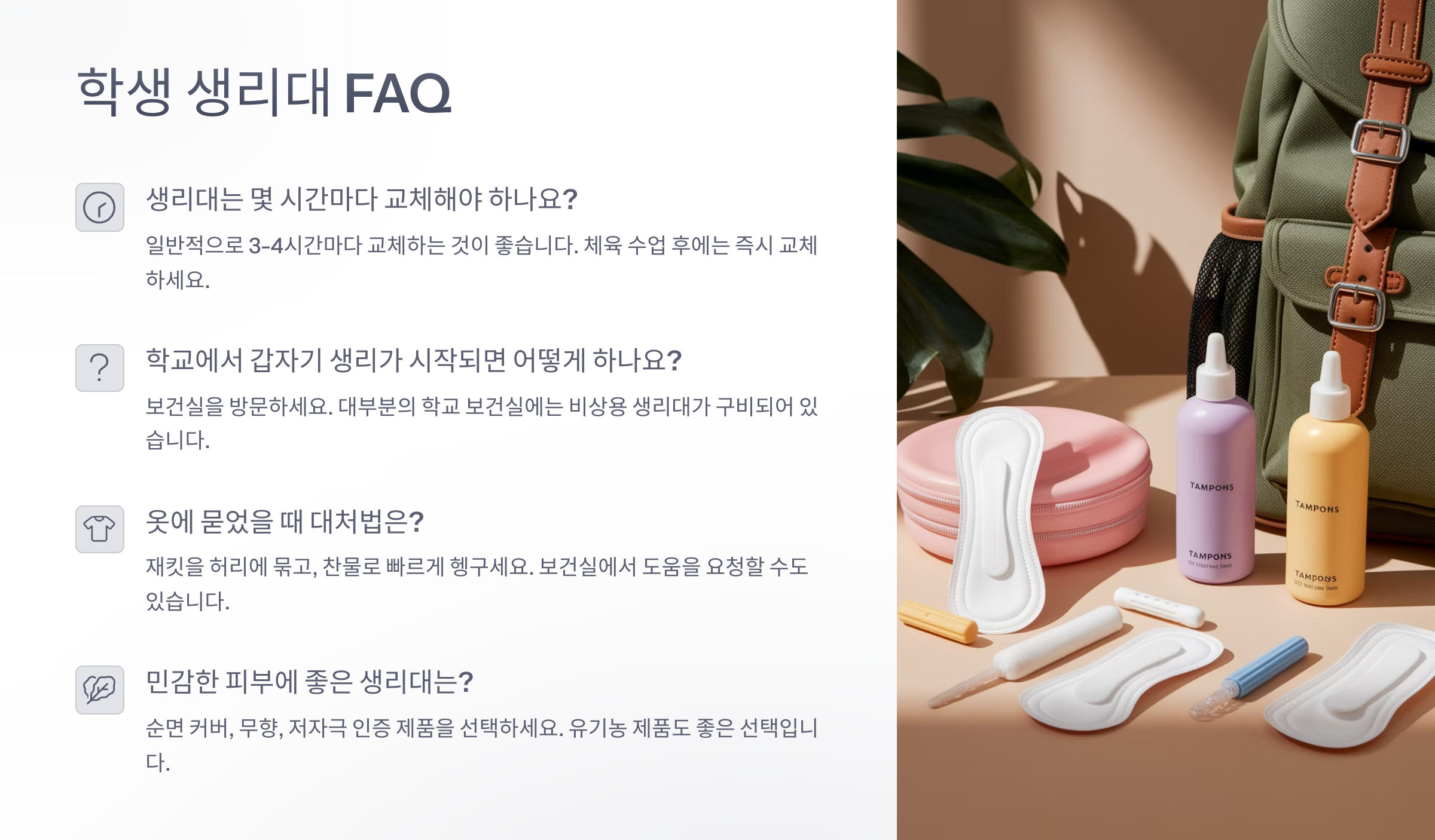 ❓ 학생용 생리대 정보 (FAQ)
