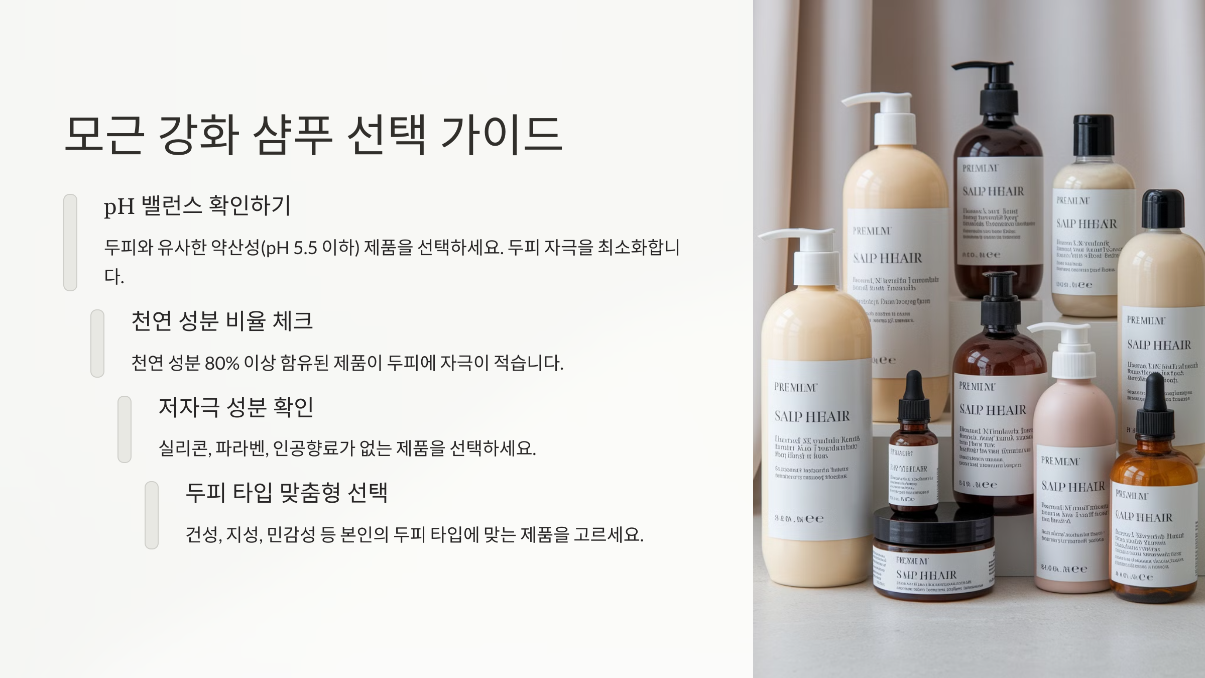 매일 쓰는 제품이니까, 한 번 더 꼼꼼하게 살펴보는 게 좋아요. 나에게 맞는 제품을 찾으면 모근이 스스로 회복하는 걸 느낄 수 있을 거예요 💧
