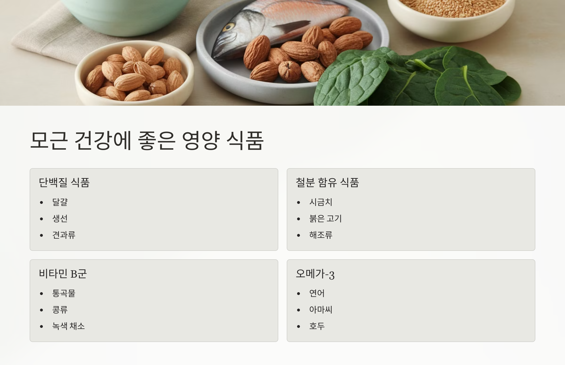 🥗 모근에 좋은 영양소 & 식품표