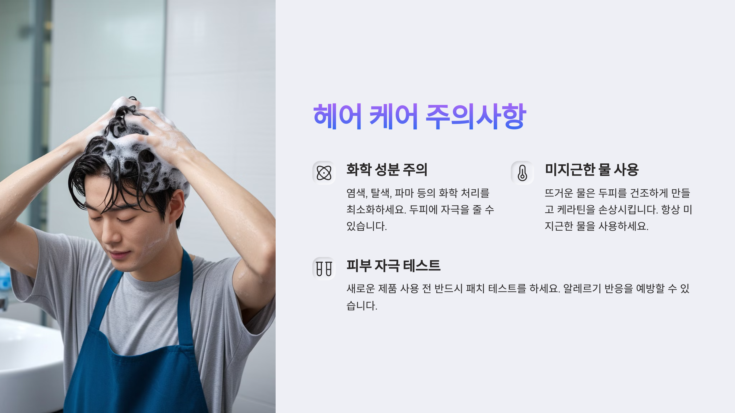 | 샴푸 선택 | 저자극, 실리콘 프리 제품 |