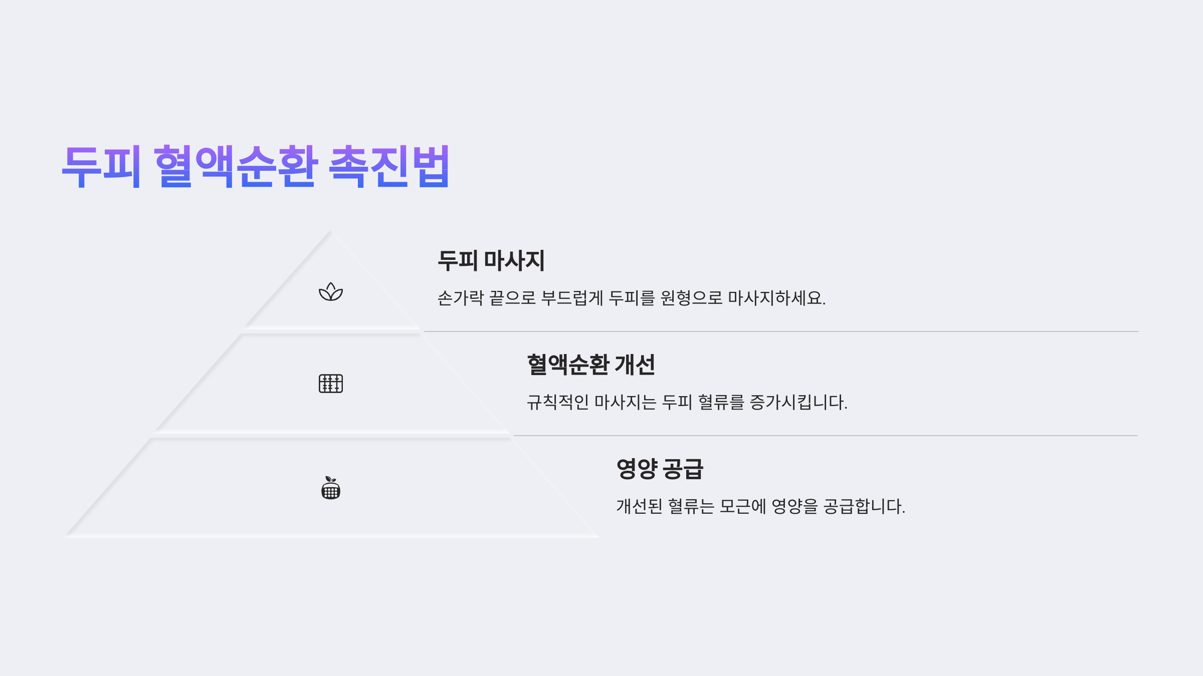 두피도 근육처럼 자극을 줘야 건강을 유지할 수 있어요. 매일 조금씩 시간을 내어 마사지해보면 큰 차이를 느낄 수 있어요. 🔁