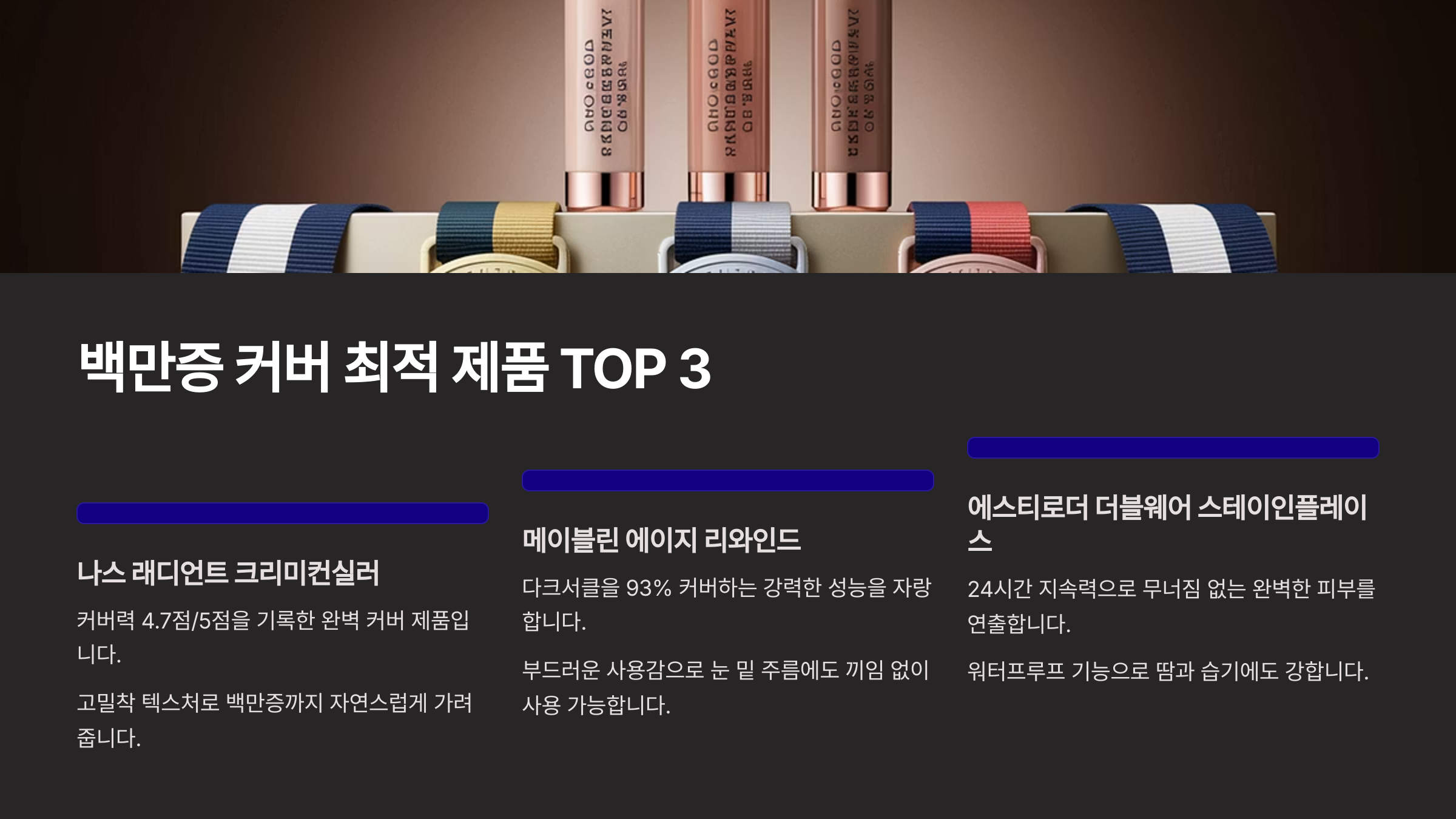 👑 TOP3 고커버 컨실러 비교표