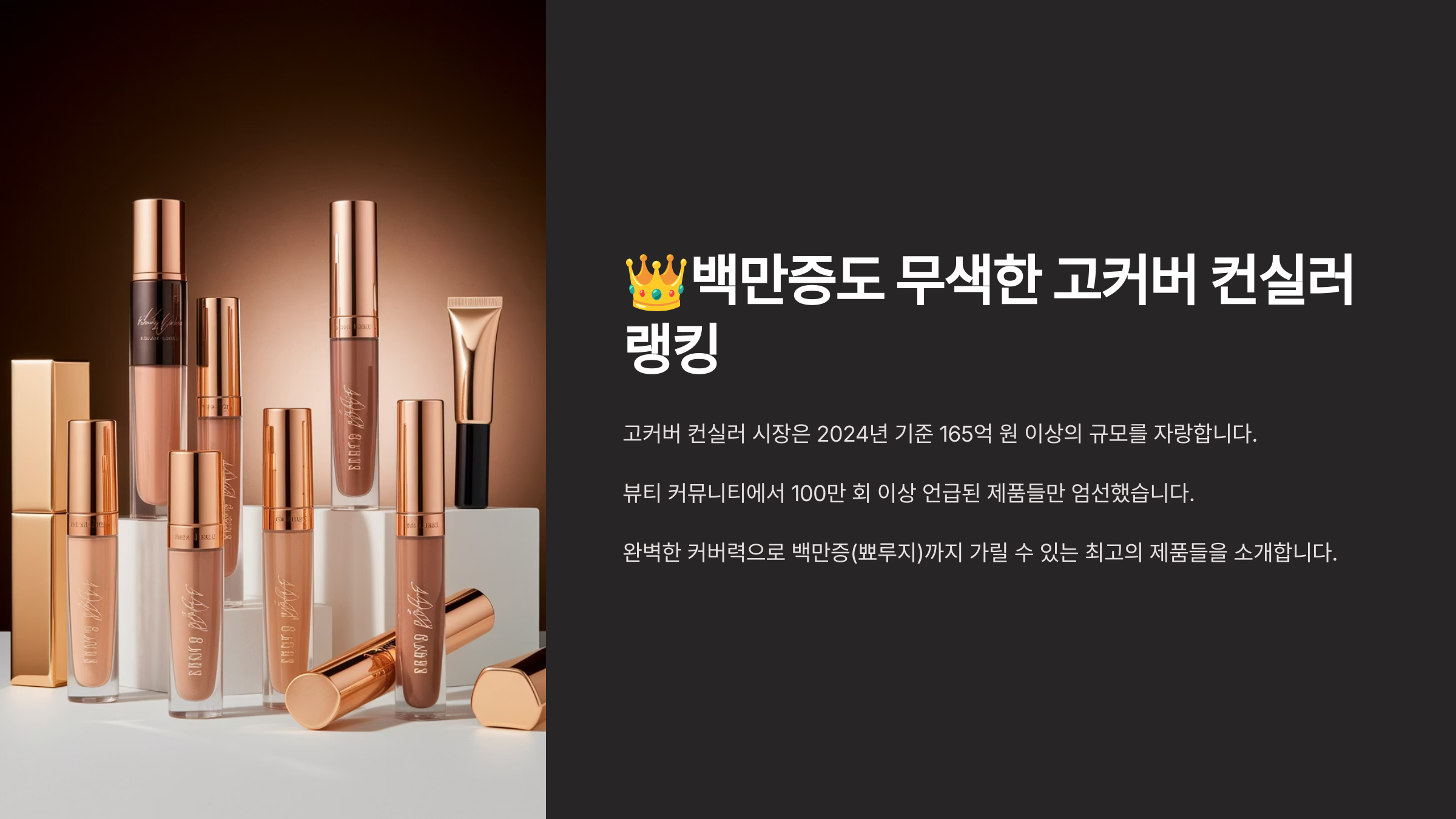 컨실러는 이제 단순한 잡티 커버 제품이 아니에요. 특히 '백만증(백반증+기미+잡티)'처럼 넓은 면적을 효과적으로 커버해줄 수 있는 고커버 컨실러는 메이크업의 핵심템으로 자리 잡았죠.